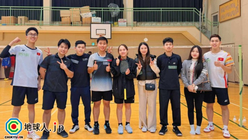 岩手県の特定技能(工業製品製造業)で働く、ベトナム国籍とタイ国籍の9名が「バドミントン体験をしよう!」に参加しました。